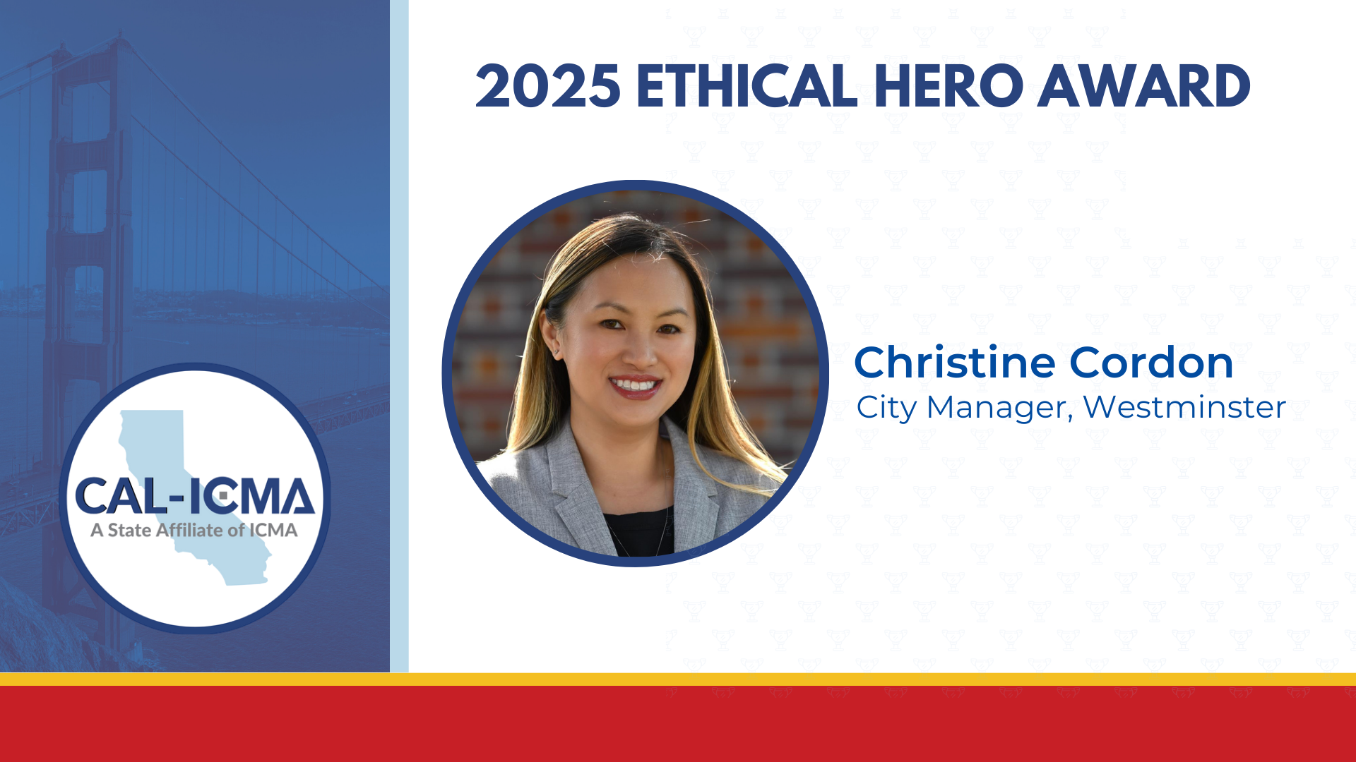 WESTMINSTER, Calif. – The City of Westminster is proud to announce that City Manager Christine Cordon has been awarded the 2025 Ethical Hero Award by the California Affiliate of the International City/County Management Association (Cal-ICMA) for her commitment to ethical leadership and public service.
